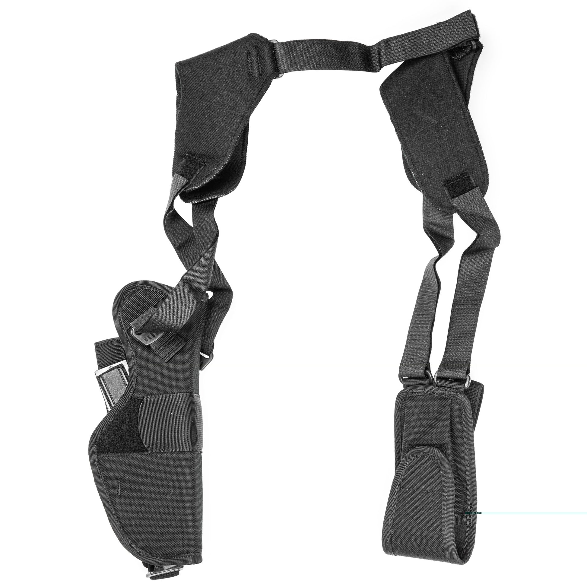 - Off-side tie-down has single mag case for autos or single speedloader case for revolvers
